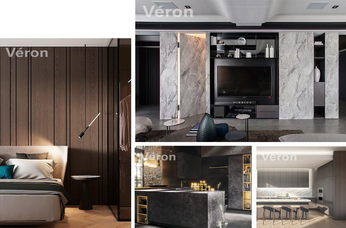 > 適用風格:現代時尚簡約風格及輕奢風格。產品光澤度飽滿,色彩還原度高,真實還原了天然大理石的光潔度和細膩感。此款人造板飾面,完美的解決了大理石或者板巖的造價高昂、有害輻射、運輸成本高、安裝難度大的問題。